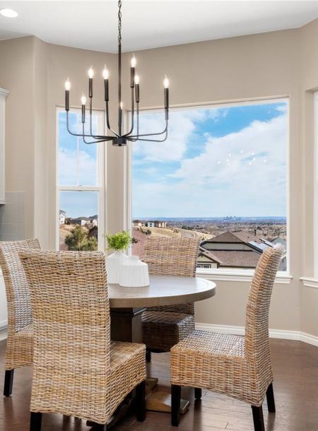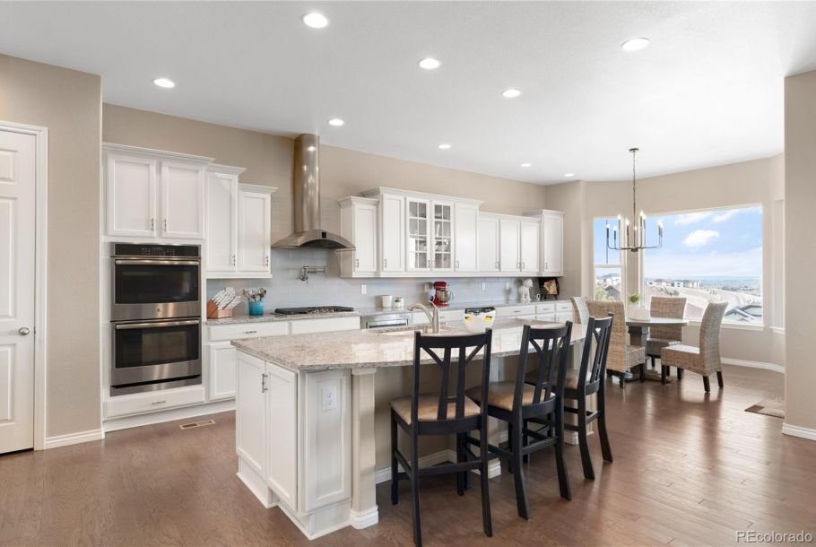 Welcome to your beautiful, sprawling ranch-style home perched on a hill in the desirable Leyden Rock community! Walking through the grand entry your eye is immediately drawn to the wall of windows and stunning views of downtown Denver and the foothills. Designed with entertainment in mind, the open floor plan seamlessly connects the gourmet chef’s kitchen, equipped with top-of-the-line stainless steel appliances, stunning island, and convenient pot filler, to the great room, where you’ll find a cozy fireplace and direct access to the covered back deck. Relax and take in the unbeatable Colorado evenings in the outdoor living space. The main floor primary bedroom suite is the perfect sanctuary to retreat at the end of the day. Double doors invite you inside to the oversized room with sitting area, spa-like bathroom with soaking tub, dual sinks, large shower and impressive walk-in closet. Access the back deck from your room to enjoy your morning coffee! The first floor also boasts two generously sized additional bedrooms, each with its own private ensuite, and a home office, perfect for working from home or studying. In addition, there are there are two separate attached garages, one for two cars, which opens to the mudroom and the single garage opens to the laundry room, both feature professional epoxy floors. Descending down the impressive staircase to the finished basement, you’ll find ample space for entertaining guests, relaxing in the dedicated theater room, and accommodating visitors in the private guest suite, which is ideal for a nanny or overnight guests. Ideally situated with easy commute access to Denver, Boulder and Golden as well as miles of hiking trails just outside your front door, this majestic neighborhood is the perfect blend of rural tranquility and city convenience. Don’t miss out on the opportunity to make this stunning luxury home your own and experience the very best of Colorado living!